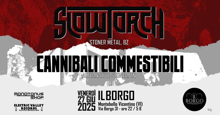 Venerdì 27 al Borgo di Montebello Vicentino c’è una serata stoner con i bolzanini Slowtorch accompagnati dai Cannibali Commestibili da Trento. Poi c’è un’altra data dei Folkstone, stavolta al Triskell Celtic Festival di Trieste e ad ingresso gratuito.