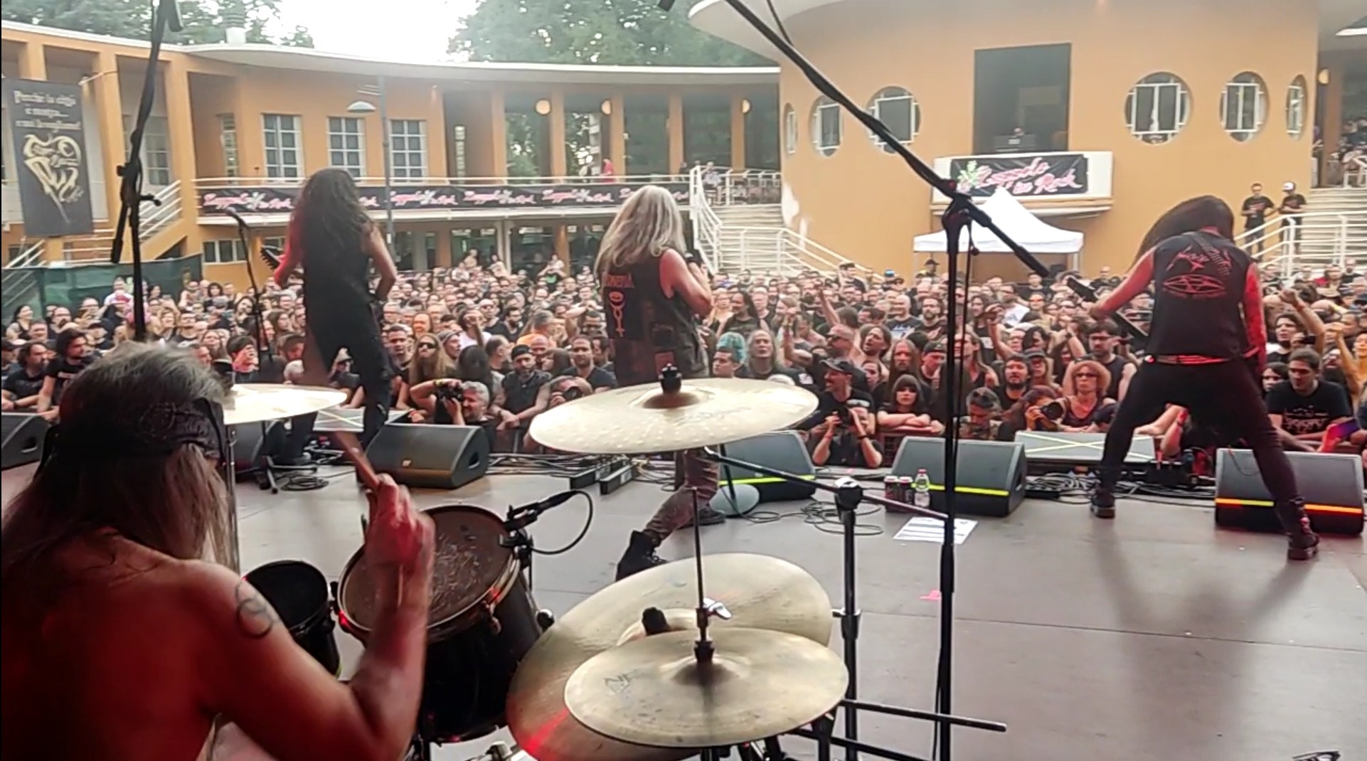 Ritorno nell’area concerti per i THE HEADLESS GHOST, milanesi, proprio durante una prova di forza del chitarrista solista. Anche qui siamo sul metallone classico, pur se più variegato rispetto al gruppo precedente. Suoni non ottimali, mi pare, ma va benissimo lo stesso. L’altro chitarrista ha gli occhiali da sole e lo sguardo fisso tipo quello di Barella quando si presentò in hangover al Quirinale da Mattarella. In chiusura annunciano una cover “dedicata al re”. Di chi staranno parlando? Vittorio Emanuele II? Aragorn figlio di Arathorn? Joey DeMaio? E invece è il Re Diamante, e il pezzo è Evil, direttamente da Melissa, disco a me molto caro.