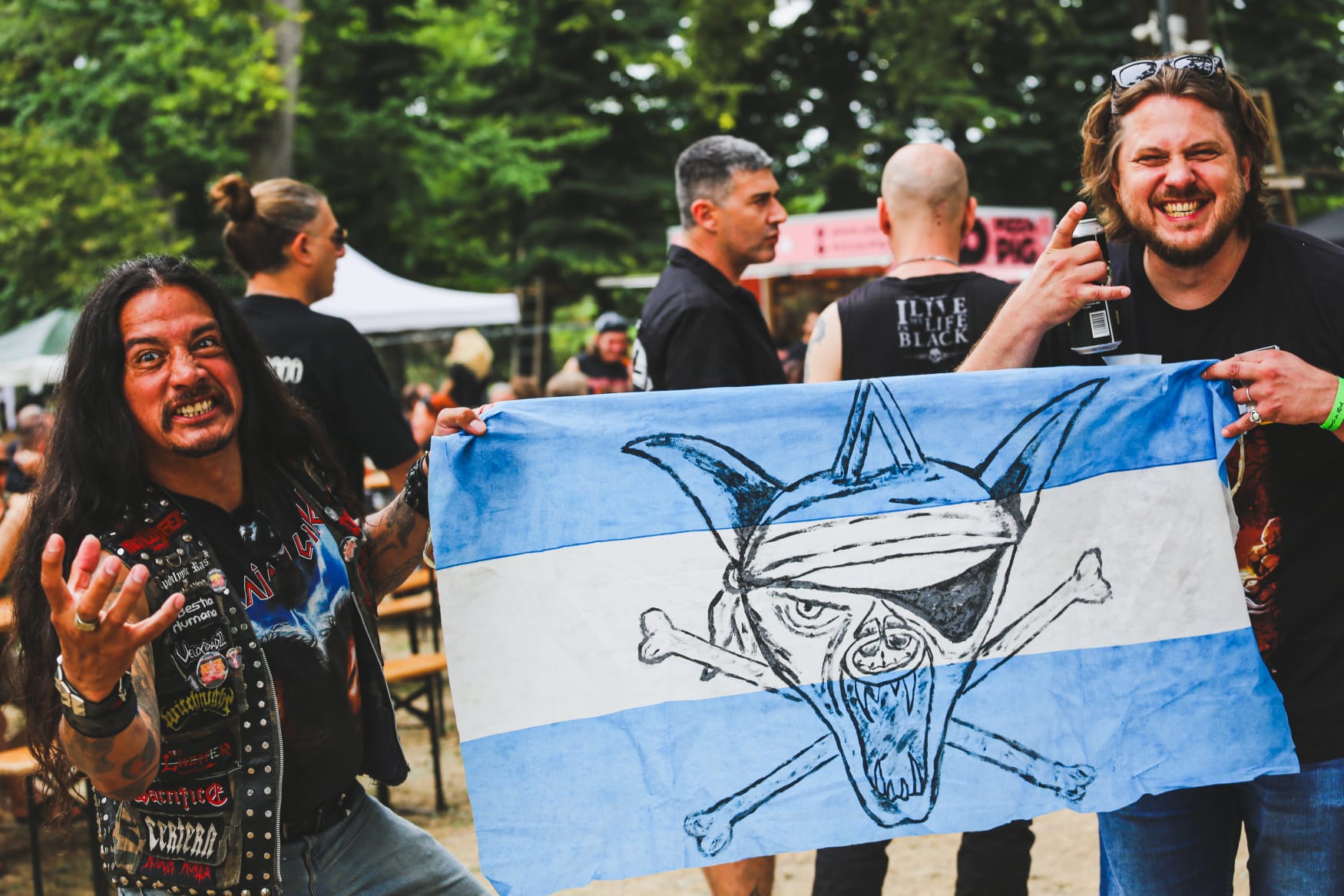 Barg: Come promesso, oggi ho accarezzato i miei figli e ho detto loro che papà li ama, ma non può assolutamente perdersi i RUNNING WILD! che suonano al Luppolo. Il cartellone di oggi è un po’ particolare perché è tutto sbilanciato sull’headliner. Basta guardarsi intorno per intuire che sono quasi tutti qui per i Running Wild. C’è una quantità spropositata di gente che indossa la loro maglietta (me compreso, peraltro), oppure con bandane, cappelli e altri ammennicoli pirateschi; di contro, non mi pare di aver visto nessuno con la maglietta di Firewind o Crashdiet. A quanto ho capito oggi c’era anche una sorta di raduno mondiale dei fan club dei Running Wild, con gente venuta appositamente dall’estero, anche da Oltreoceano. Ho incrociato anche un eroe con una maglia con su scritto “Sono qui solo per i Running Wild”.