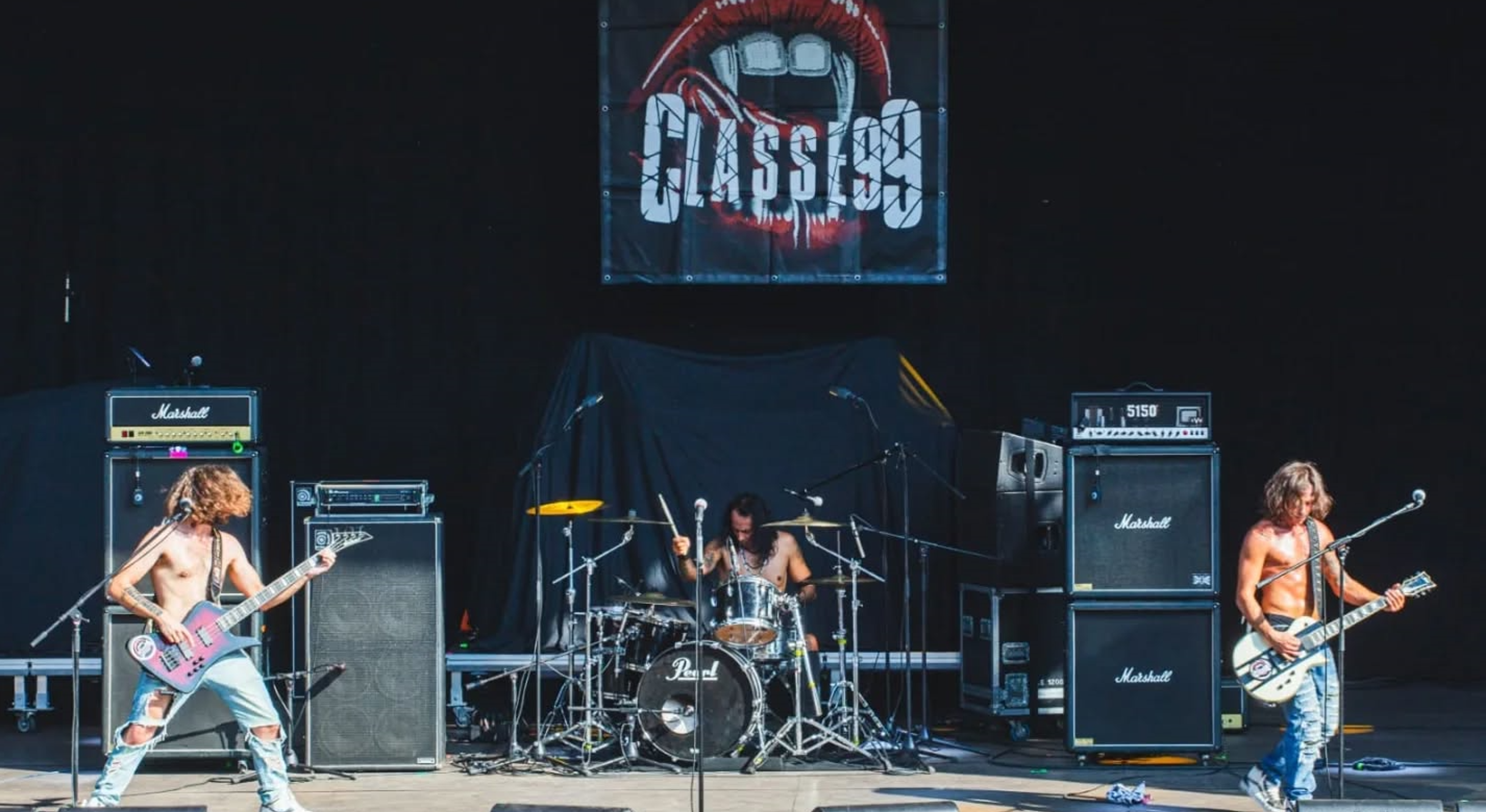 Entriamo nell’area concerti appena in tempo per sentire i CLASSE 99, trio toscano a petto nudo che propone quello che loro definiscono grunge’n’roll. La cazzimma c’è, i suoni sono ottimi e loro sono carichi come molle, nonostante i 45 gradi percepiti sotto al palco e chissà quanti sopra. I testi in italiano sono un po’ stranianti contestualizzati in questo genere, e se dovessi definirli da questa mezz’ora direi che mi sembra di ascoltare (e non è assolutamente un’offesa) i Verdena con la voglia di scopare invece che di farsi le spruzze nei sottopassi della stazione.