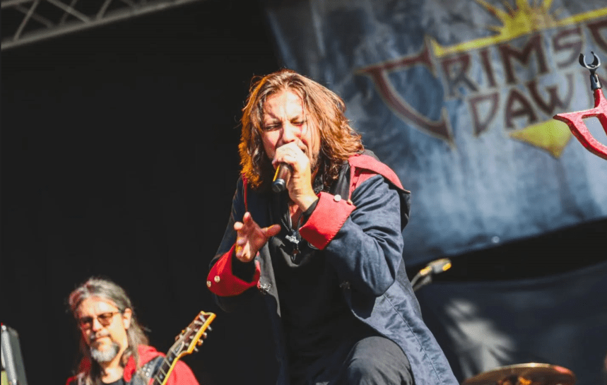 Mezz’oretta e passiamo ai CRIMSON DAWN, doom power sinfonico da ascoltare mentre si cavalca un drago verso le paludi maledette alla ricerca di troll malvagi da sconfiggere. Anche qui i suoni sono ottimi. Noi ci godiamo lo show all’ombra, mentre cerchiamo di capire se qualcuno di noi ha pestato una merda, date le vampate che arrivano ogni tanto da destra e sinistra.