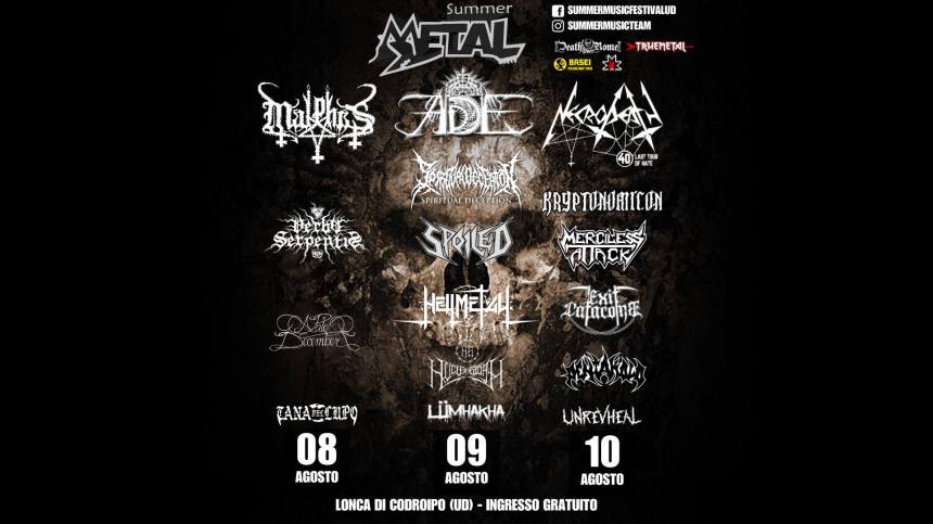 Il weekend dell’8, 9 e 10 agosto segnaliamo due festival: a Codroipo (UD) c’è il Summer Metal 2025, a ingresso gratuito. Il venerdì quattro gruppi con headliner Malphas; il sabato sei gruppi con headliner Ade; e la domenica altri sei gruppi con headliner Necrodeath.
