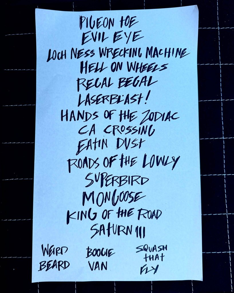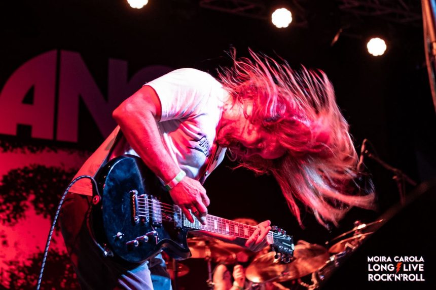 Il concerto dei FU MANCHU inizia in perfetto orario e l’aria si colora nell’attesa delle prime note emesse dagli ampli. Scott Hill, che dalla voce sembra sempre un ragazzino, si presenta assieme ai soci con camicione d’ordinanza e chitarra trasparente; inizia a toccare le manopoline delle testate, partono i primi fuzz, i primi fischi e poi attaccano con Pidgeon Toe, su cui ovviamente perdo la brocca giacché non me la aspettavo. I suoni sono a posto da subito ed è tutto bellissimo, perché i riff si sentono bene, loro sono in formissima e si riesce a sentire distintamente il contributo di ogni singolo strumento, dagli assoli di Bob Balch fino al basso di Brad Davis sempre rigorosamente pizzicato a ridosso del manico, mentre il colore dell’aria si fa sempre più intenso. Ovviamente il disco più rappresentato è l’ultimo The Return of Tomorrow, tra cui le due hit Hand of the Zodiac e Loch Ness Wreaking Machine che mi rimarranno in testa per tutto il giorno seguente, comunque una goccia nel mare di distorsione che pesca trasversalmente in tutta la storia musicale della band, con però l’esclusione di Start the Machine, cosa che non capisco perché in quel disco ci sono almeno un paio di pezzi di botta. La gente gradisce, visibilmente rilassata: c’è chi poga, c’è chi canta, c’è chi si gira soddisfatto sentenziando che ne valeva la pena e ovviamente c’è chi dipinge l’aria. Scaletta spettacolare, volumi ottimi ed esecuzione perfetta, nonostante un piccolo inconveniente alla batteria prontamente risolto a caldo da un buonuomo del service che si prodiga a rimontare uno dei piatti mentre il batterista suona, evitandone i colpi. Dopo un’ora e mezza finisce tutto, le orecchie mi fischiano e, nonostante non abbia toccato un pennello che sia uno, quando rincasiamo all’una passata io ho stranamente molta fame. (Maurizio Diaz)