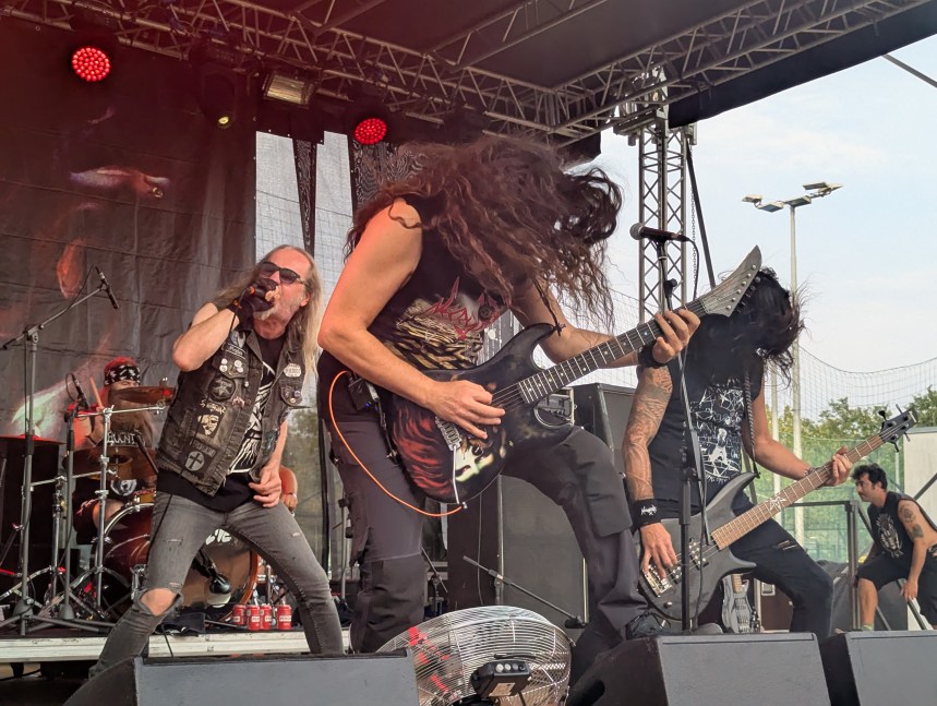 Se parliamo di metal sperimentale, niente può seguire meglio che una cinquantina di minuti degli straordinari SIGH. La loro performance merita la palma di momento migliore della prima giornata del festival o addirittura dell’intera kermesse. La band si presenta come una allegra famigliola in una spensierata vacanza (con tanto di figlie di Mirai in modalità Yin Yang: una visibilmente introversa, l’altra esuberante), ma, appena si accendono le luci, la trasformazione in sorta di show kabuki del metal estremo arriva immediatamente. Al punto che sì, un po’ piange il cuore a vederli “solo” nel tendone (per l’occasione allargato, per più aree d’ombra) del secondo palco, ma così facendo risultando più vicini alla tradizione del teatro popolare nipponico. Hangman’s Hymn, essendo stato ri-registrato di recente, diventa l’atto principale di questa performance, ma quasi metà discografia viene citata con almeno un frammento. A fine esibizione la folla è in delirio per Mirai e i suoi compagni di scena, nonostante sia mancato il famigerato momento della spada fiammeggiante per motivi logistici. Loro si confermano tra gli innovatori del metal degli ultimi decenni, con buona pace del compositore che con umiltà ha sempre cercato di minimizzare le lodi al suo approccio innovativo. È incredibile che una band di questo calibro abbia dovuto attendere il 2025 per avere il proprio esordio in Italia, e ci si augura che i promoter sappiano cogliere l’entusiasmo davvero palpabile che si era diffuso nell’aria. La decina di copie della nuova ristampa in cd Imaginary Sonicscape nei banchetti sono state letteralmente prese d’assalto.