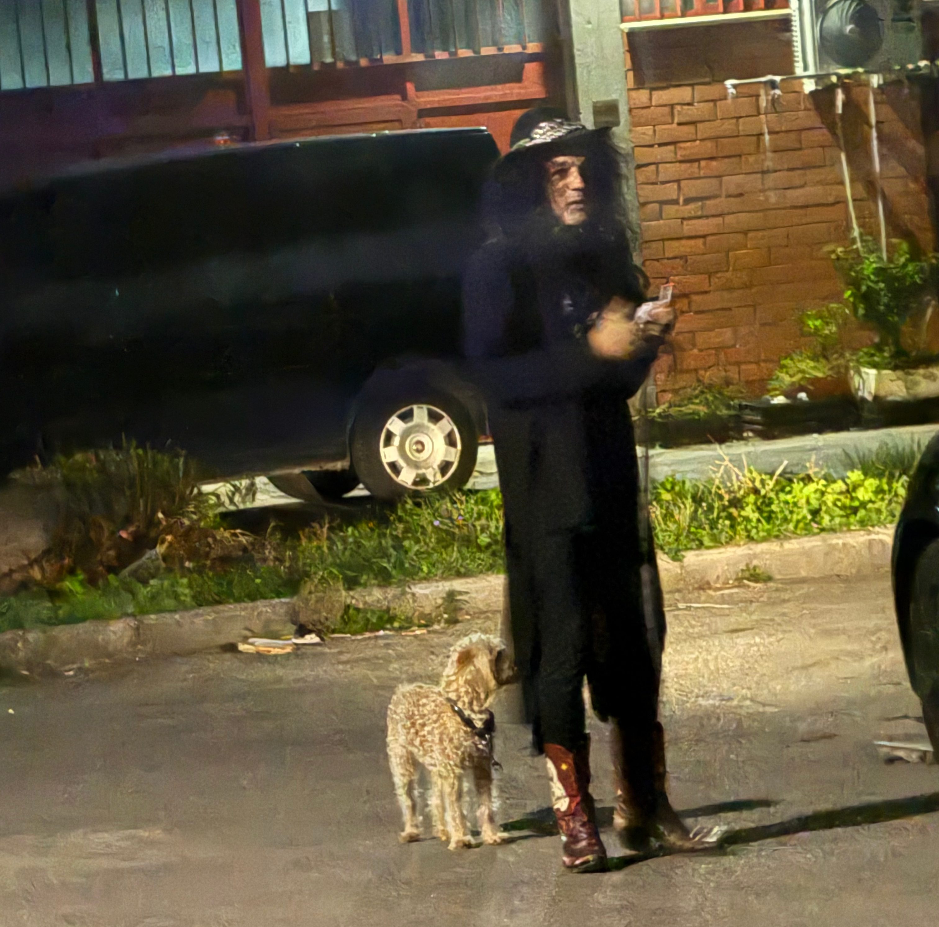 Nel frattempo il cane bianco di Adam Bomb si aggirava indisturbato nell’area a metà fra le bancarelle del merchandising e l’ingresso ai cessi.