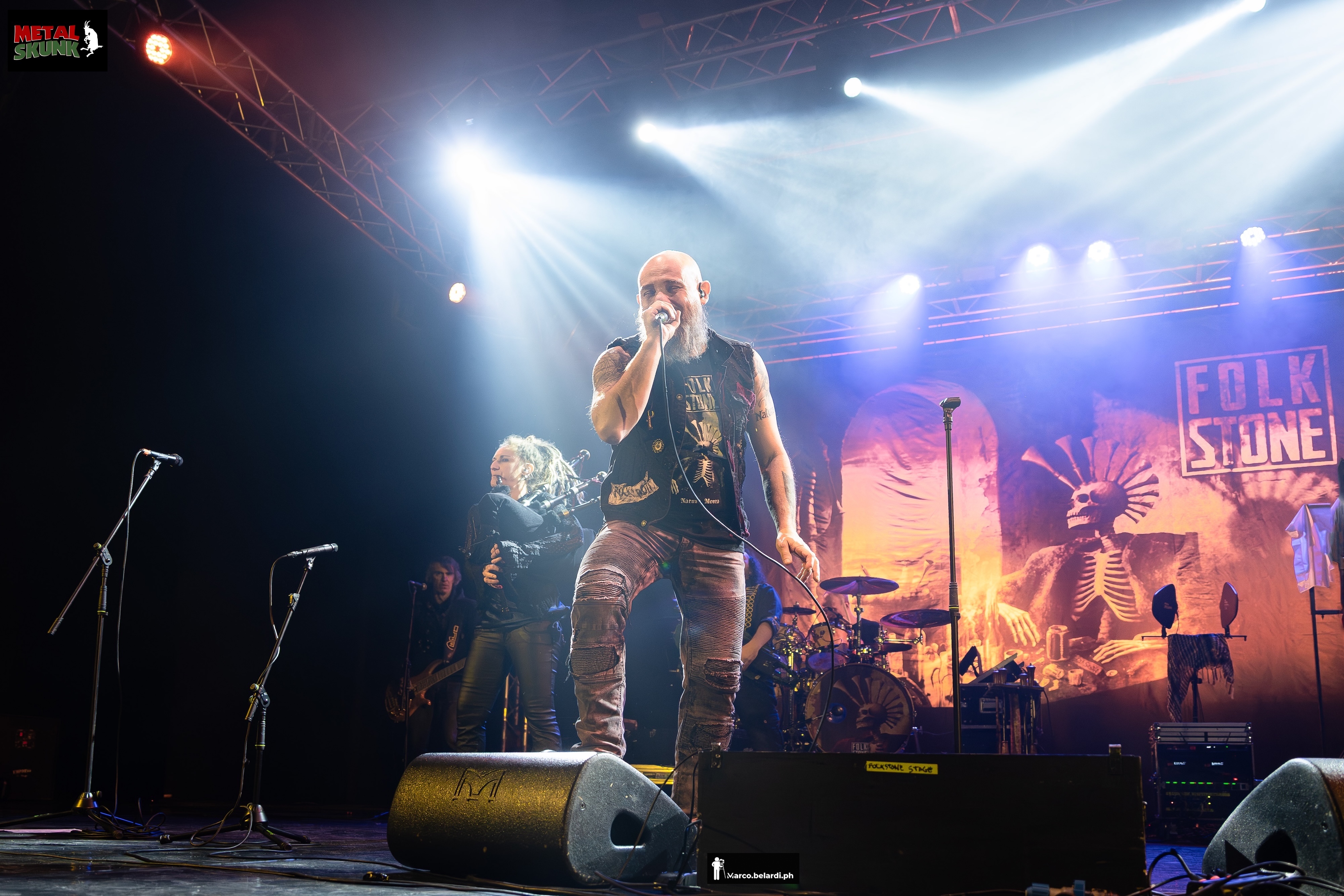 Mi giro e vedo tutte queste persone, alcune delle quali neanche definiresti metallare, cantare a menadito ogni loro canzone, specie le più contemporanee. Si fanno trascinare, saltano e ballano, incitano e godono del momento. Che cazzo vuoi dirgli ai Folkstone? Che non sono più i Folkstone di Damnati ad Metalla? È un gruppo estremamente preparato e che ha fatto un percorso che oggigiorno non combacia più assolutamente con quelle che sono le mie esigenze personali di appassionato di musica: un po’ come quando i Lacuna Coil fecero il salto da In a Reverie a Unleashed Memories e Comalies e si andava dicendo che non erano più loro. Generalmente ne fuoriesce un pubblico e ne subentra un altro, è dal 1991 che siamo abituati a tutto questo. Per cui finché subentra un pubblico io do e darò puntualmente ragione alla band di turno, anche se questa non fa più il mio, chiamiamolo così, “interesse”.