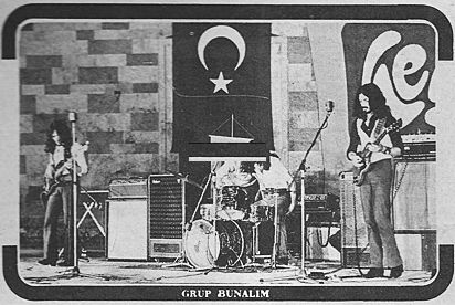 Più selvaggio ancora e molto più underground (un certo successo ha arriso ai tempi ai 3 Hürel) il caso di un altro complesso, quello del Grup Bunalım, o anche solo Bunalım (Depressione) o Bunalımlar. Potenzialmente più hard ancora ma molto meno prolifici, dato che se ne rintracciano pochissimi singoli registrati prima che la band si sciogliesse e i suoi componenti confluissero in altri ensemble maggiormente blasonati o al servizio di star nazionali (nei Dadaşlar di Ersen Dinleten, nei Kurtalan Ekspres di Bariş Manço, come vedremo anche in alcune delle formazioni che hanno accompagnato Erkin Koray). Su di loro girano storie quasi leggendarie. Si dice di demo super-heavy scomparsi ormai nel nulla, si racconta di concerti devastanti tra luci stroboscopiche, volumi esagerati ed inni all’LSD (ecco, loro sì, pare che non si nascondessero troppo). Chissà in che stato erano quando (si dice) si lanciarono di corsa nudi tra la folla dedita alle compere su İstiklal Caddesi, nel centro di Istanbul. In realtà i Bunalım erano la creatura del chitarrista Aydın Çakuş, nato a New York ma rientrato in Patria poco più che infante. Furono Hendrix e i Cream, quindi riferimenti fuori confine. Poi furono le sostanze psicotrope a espandere anche i confini non geografici. Nel 1969 il suo complesso è attivo, sotto l’ala protettiva, nel ruolo di produttore, di un Cem Karaca già stella nazionale. Il primo singolo Taş Var Köpek Yok / Yeter Artık Kadin (La pietra è lì e il cane non c’è / Basta donne, 1970), scritto proprio in collaborazione con Karaca, anche se cantato in turco, è un’esibizione per certi versi abbastanza convenzionale tra tardo beat e Blue Cheer. Però, mica male somigliare ai Blue Cheer in Turchia nel 1970… E mica male le urla metal dissennate del finale stoogesiano del lato B, un classico r’n’b (titolo originale Get Out Of My Life, Woman), già ripreso dagli Iron Butterfly, ma mica con questa rabbia. Anche il lato A, comunque, in quanto a nichilismo proto-punk annoiato non ha nulla da rimproverarsi.