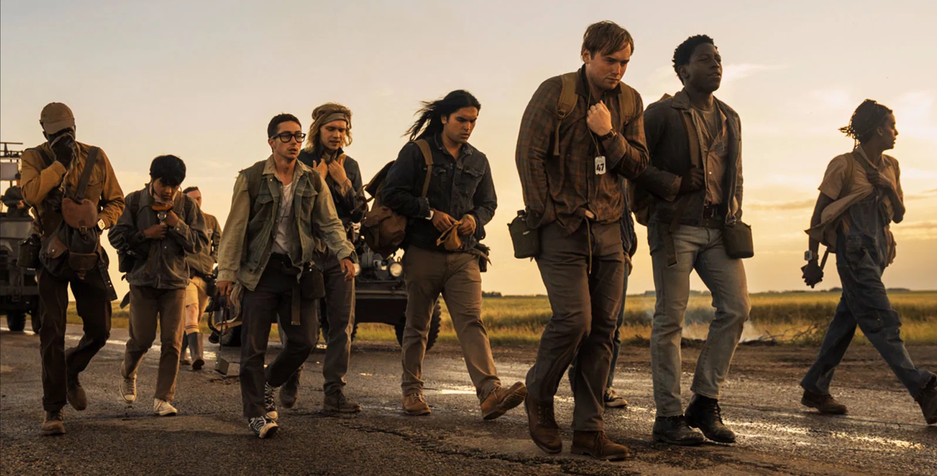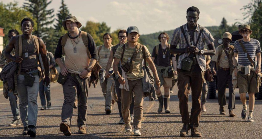 The Long Walk è un film basato sull’omonimo romanzo di Richard Bachman (lo pseudonimo usato da Stephen King soprattutto negli anni ’70) scritto nel 1966 e pubblicato tredici anni dopo in America. La storia, asciutta e senza particolari spiegazioni circa il contesto, è ambientata in una versione distopica degli Stati Uniti, usciti malconci da una Grande Guerra di cui si ignorano schieramenti ed esiti definitivi, ma possiamo supporre che non sia andata proprio benissimo per i nostri fedeli c̶o̶l̶o̶n̶i̶z̶z̶a̶t̶o̶r̶i̶ alleati. La lunga marcia del titolo prevede la partecipazione di 100 ragazzi, tra i candidati selezionati (nel film diventano 50) ad una camminata infinita, organizzata dal Maggiore, un militare esaltato che, prima della partenza, spiega ai partecipanti l’importanza dell’evento per incentivare la produzione e aumentare il PIL del paese.
