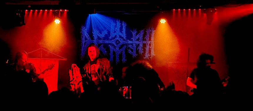Mi dovranno perdonare i due gruppi d’apertura, SVART VINTER e DEWFALL se non riesco a recensire le loro esibizioni. Per sozzi motivi di lavoro arrivo troppo tardi. Mi occupo (anche) di Medio Oriente, quindi è un po’ di giorni che so quando entro in redazione ma non quando ne esco. Ovviamente parlo della redazione dell’agenzia di stampa per cui scrivo, non della possente Skunk Metal Tower con tre piani a disposizione di ogni redattore dotati di idromassaggio, sauna, sala cinema e sala droga. Il Masticatore lo abbiamo sfrattato perché non scrive mai un cazzo, quindi abbiamo affittato i suoi locali a Palantir. Riesco comunque ad ascoltare l’ultima tranche del concerto dei Dewfall, che non ricordo di aver incrociato in precedenza, seppure siano piuttosto attivi. Ne ho ricavato una discreta impressione. Black epico, diretto e immediato, violento ma non troppo, a suo modo piacione. Traversa, mio compagno per l’occasione insieme a Enrico, non riesce a decifrare il logo.