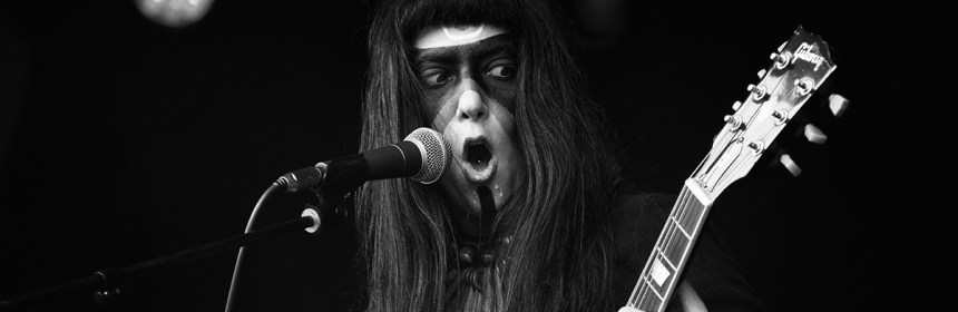 Lili modula con la sua ugola anime diverse, pare che di volta in volta venga posseduta da un’entità differente. La varietà di registri che ha imparato a gestire è impressionante, ne tocca di quasi maschili. Il nero della maschera dipinta sul volto si fonde con l’oscurità. Gli estratti dall’ultimo Nagalite compongono un’unica sinfonia coerente e organica con le composizioni più datate. Crescendi sommessi ma inesorabili di percussioni ossessive e tribali avvincono anche i metallari più true che, pur con sguardi spaesati, muovono il capo mentre i ritmi si fanno più carichi fino a una breve pausa che fa esplodere un applauso caloroso e convinto. Che esegua i loop sul momento, invece di mettere basi preregistrate per cantarci sopra e basta, è un aspetto che la caratterizza, una parte del discorso, certo. Però mi piacerebbe vederla con una sua band.