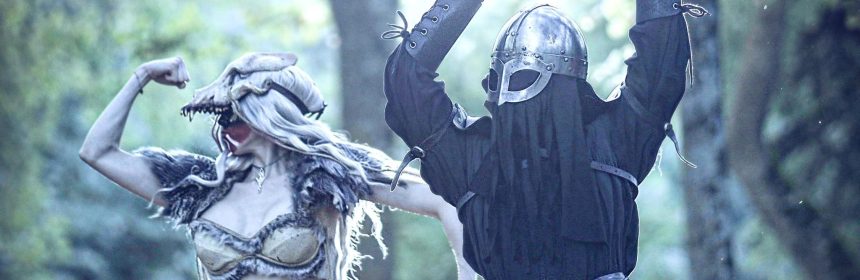 La prima metà del concerto si sussegue in questo modo per una mezz’oretta – se non ricordo male dei singoli più famosi Hugrheim viene riproposta proprio in questa fase iniziale – l’altro singolo più famoso, Berserkr, che li ha resi famosi, verrà lasciato per il bis. Dopodiché Asrunn si ferma e annuncia, ancora col fiatone, Ljósgarðr, una ballad tratta dall’ultimo album, Hugrheim, durante la quale Mark dà prova di un’abilità alla chitarra non scontata. Finito l’intermezzo per riposarsi il concerto riprende come prima e anche il pubblico sembra essersi finalmente scaldato. A un certo punto – durante non ricordo quale canzone – propone a tutti di abbassarsi sulle ginocchia e saltare al suo “tre” e tutti partecipano molto convintamente a questo e agli altri balli della cantante francese, che dichiara con orgoglio di avere origini italiane, anche se noi l’avevamo già intuito. Durante questa parte del concerto Asrunn sembra proprio una ragazzina che si diverte a ballare nella sua stanza con la musica a palla – e lo dico nel migliore senso con cui si possa intendere questa frase, ovvero che trasmette una felicità e un divertimento estremamente genuini. Quando lo scoprii partii relativamente critico verso questo progetto che sembrava volere soltanto campare sulla moda legata all’immaginario vichingo (e forse è tuttora così) e sulla leggendaria inconsistenza del carro di buoi, ma tutto sommato cosa gli si può dire? Fanno musica che se presa alla leggera – e a piccole dosi – può anche essere piacevole, si divertono – e anche molto, sembrerebbe – sono molto affiatati – e sul palco lo si percepisce distintamente – e stanno avendo un discreto successo. Bravi loro. (Edoardo)